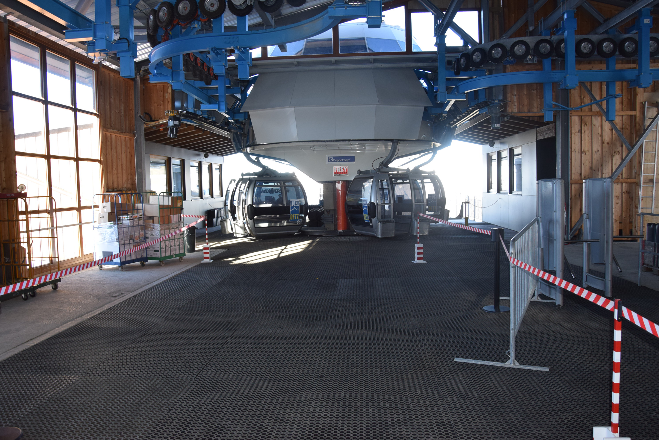 Wie mir Mathias erzählt, sind diese Kabinen bei Einheimischen, Stammgästen und Sportgeschäften heiß begehrt! Deshalb war es auch eine Bedingung an die Abbaufirma, dass die Bergbahnen Hochoetz 20 Kabinen der alten Generation behalten bzw. weitergeben dürfen. Auf diesem Wege fanden es ein paar Kabinen auch wieder zurück nach Sölden, ihrem ursprünglichen „Heimatort“.