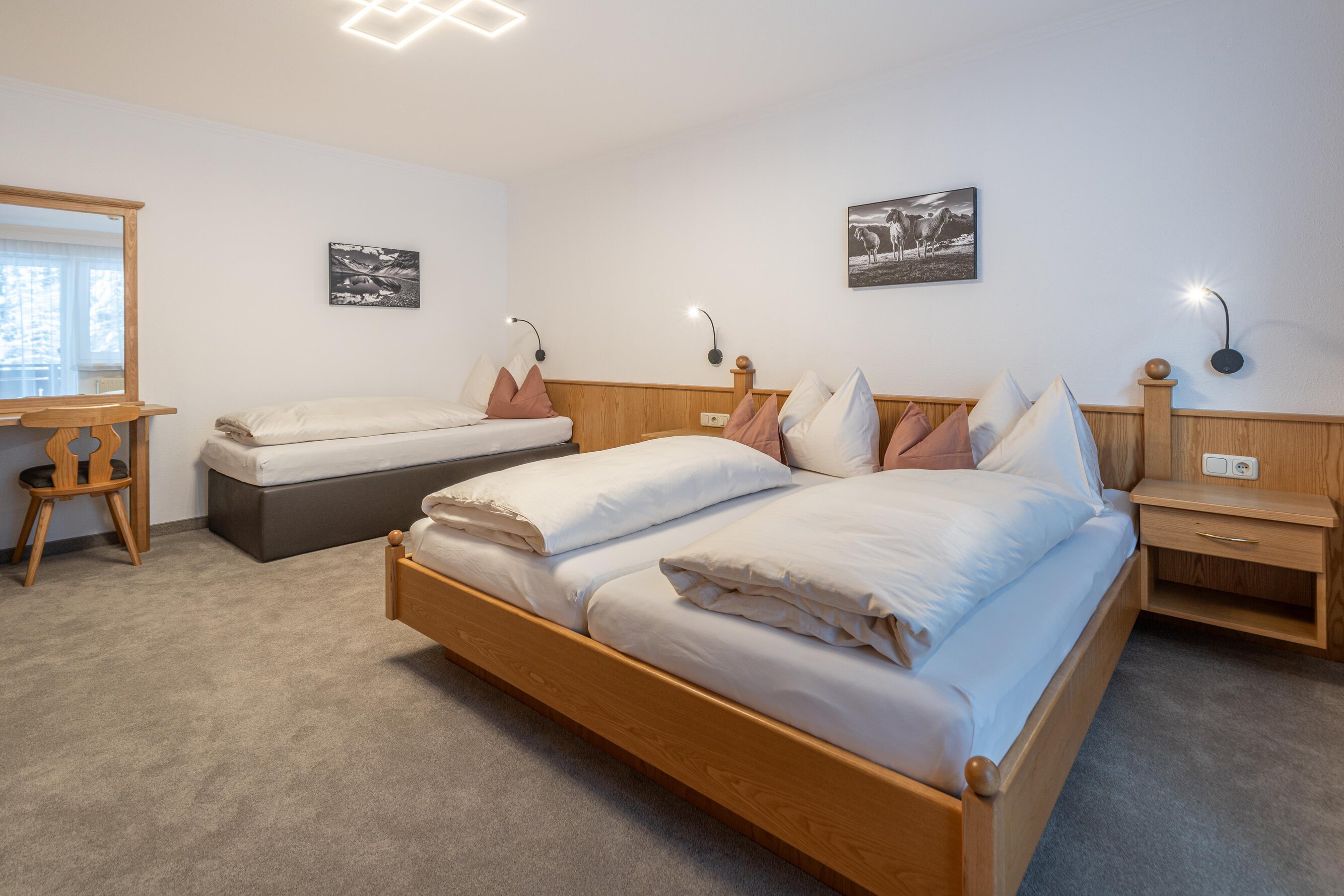 Gemütlich ausgestattete Komfortzimmer und großzügige Ferienwohnungen bieten Ihnen und Ihrer Familie viel Raum zum Leben, Lachen und Genießen. Unsere Sauna lädt nach ereignisreichen Tagen auf der Skipiste oder einer ausgiebigen Wanderung in den Bergen zum Entspannen ein.