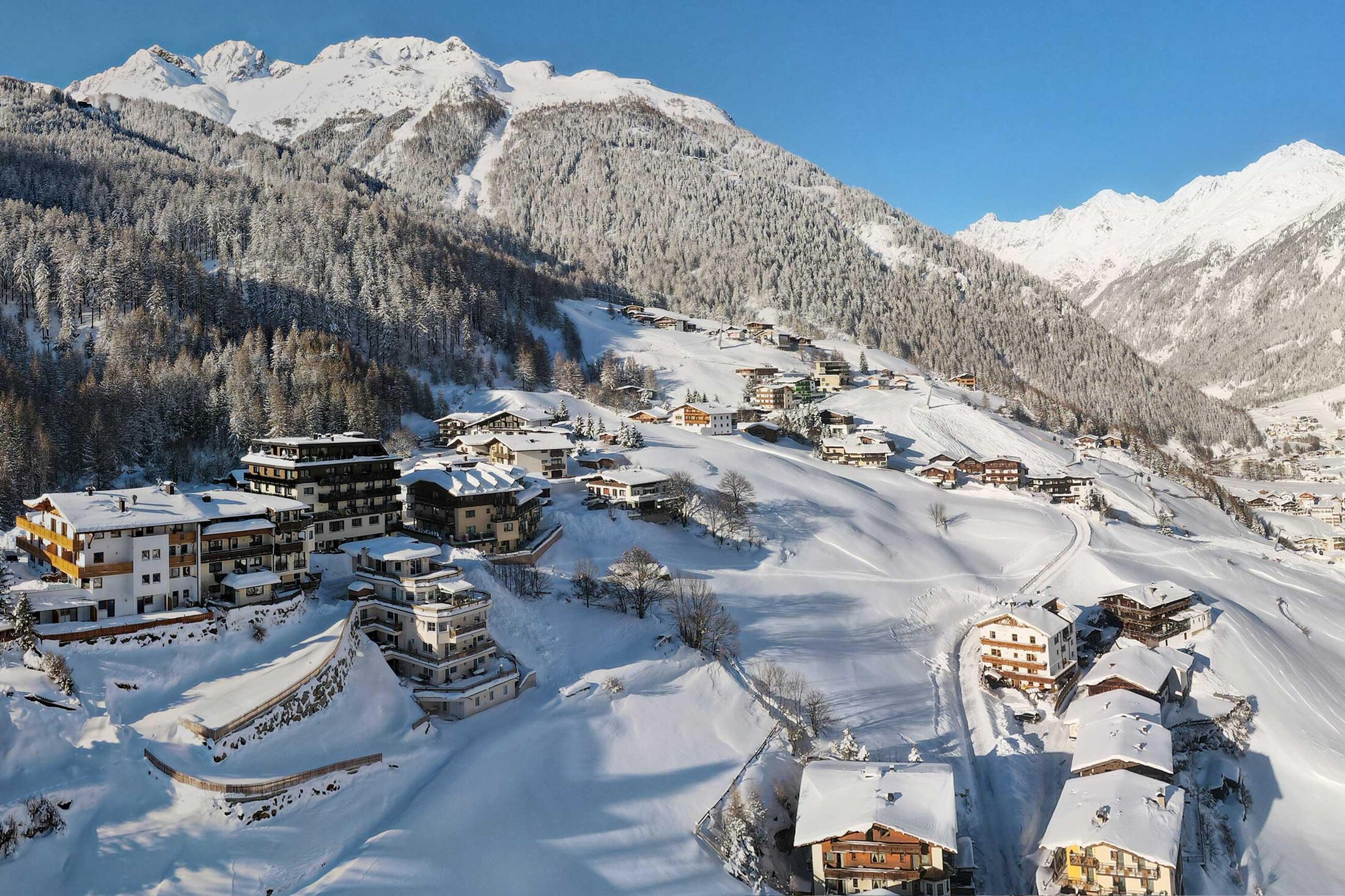 Located just above the town center (about a 8-minute walk), our new apartment building offers a magnificent view over Sölden and its breathtaking mountain backdrop. Spacious apartments, furnished with great attention to detail, ensure a relaxing and enjoyable holiday (elevator in the building).