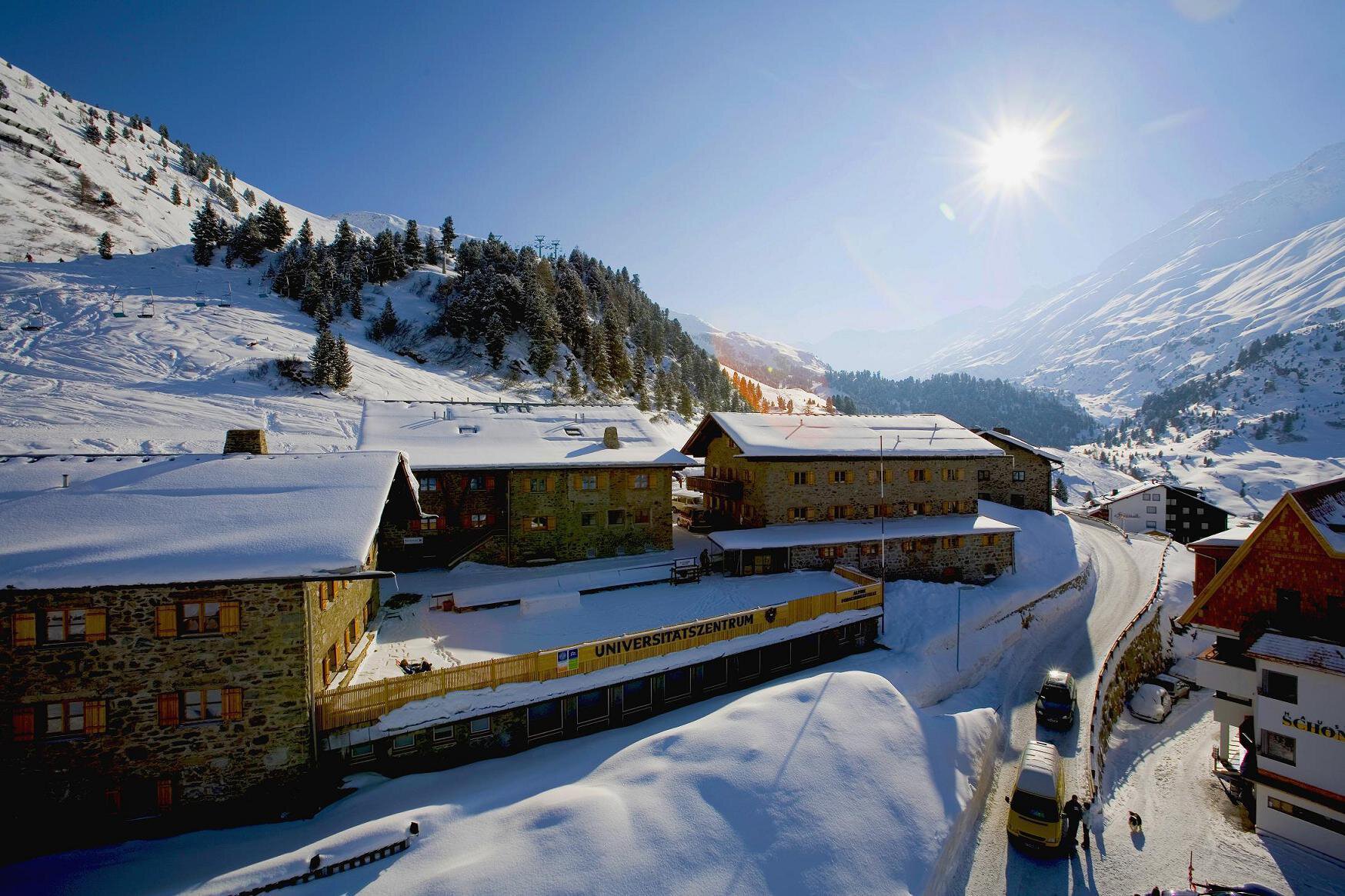 At the end of the valley, a new horizon for research, conferences and sport. The Obergurgl University Center is located at an altitude of 1,940 m, right by the ski slopes and just five minutes from the heart of the village. The listed historical buildings, carefully refurbished and equipped with the latest technical systems, house conference rooms, the Alpine Research Center, laboratory, sports medicine, lounges, restaurant and 40 bedrooms. On the doorstep: one of Euope's finest Biosphere Parks and the Ötztal Valley glaciers.